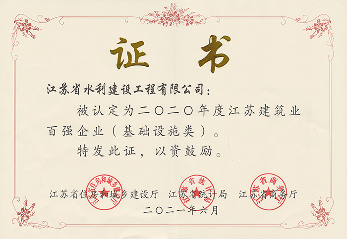 江蘇建筑業(yè)百強企業(yè)2022年度證書(shū)