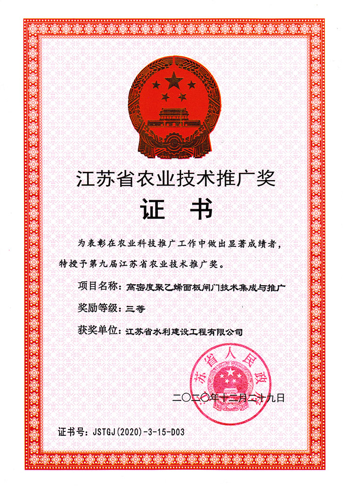 江蘇省農業(yè)技術(shù)推廣三等獎