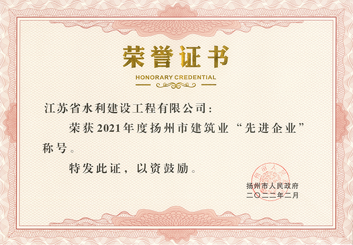 2021年度揚州市建筑業(yè)先進(jìn)企業(yè)