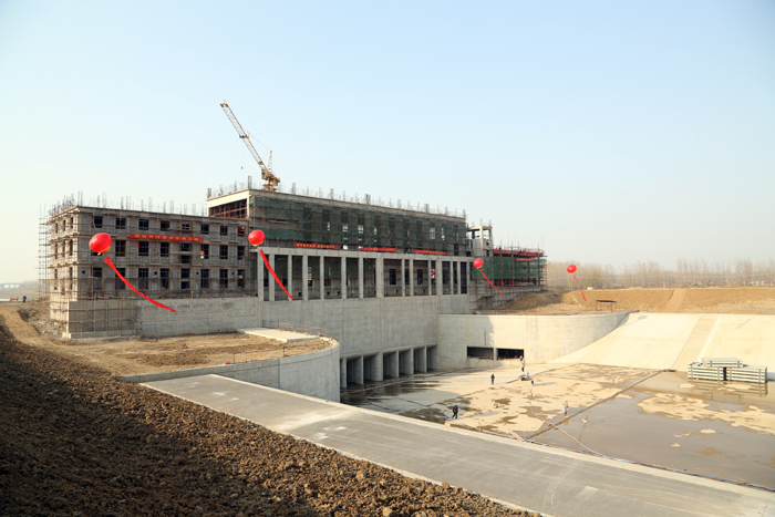 省水源公司副總經理劉軍在講話中首先肯定了工程建設取得的成績,洪澤站作為南水北調東線一期江蘇境內第二大規(guī)模的泵站樞紐,量大面廣難度高,在全體參建員工的努力下,各階段進展較為順利。他要求各個參建單位、參建人員要牢固樹立精益求精的質量意識和只爭朝夕的工期意識,把握有利時機,再接再厲做好后續(xù)工程。同時他對該工程機電安裝、內外部裝飾等后續(xù)工程施工任務的質量、進度、安全管理提出了具體要求。