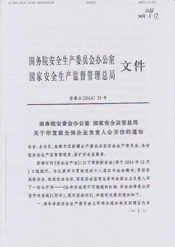 關(guān)于轉(zhuǎn)發(fā)《國務(wù)院安委會辦公室 國家安全監(jiān)管總局