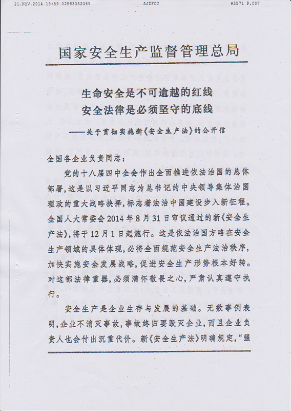 以人為本、生命至上——關(guān)于貫徹實(shí)施新《安全生產(chǎn)法》致項(xiàng)目經(jīng)理的公開信