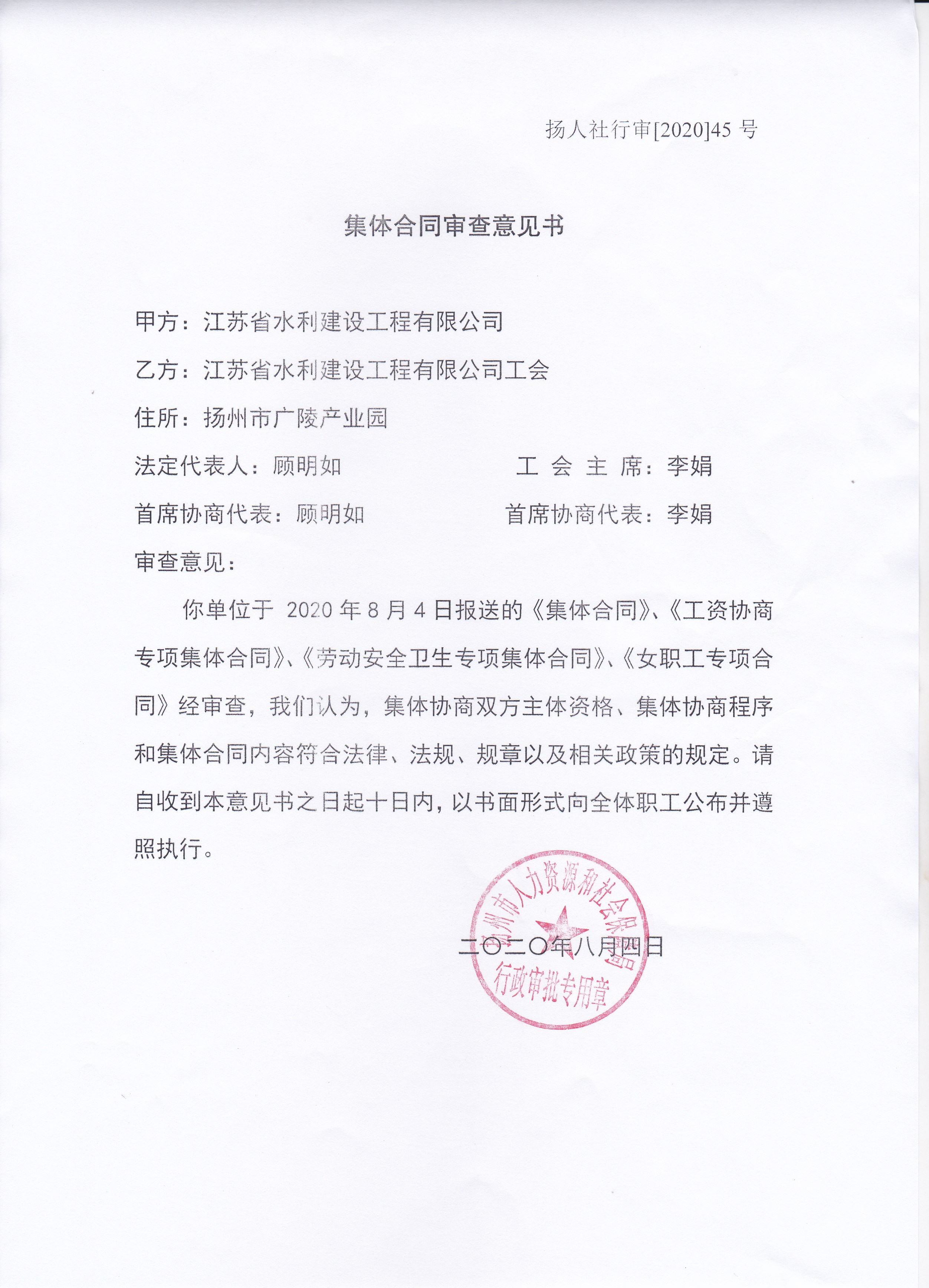 集體合同審查意見書
