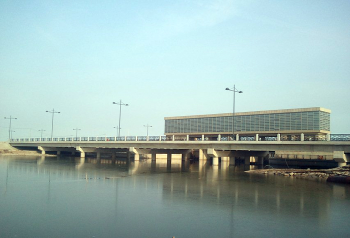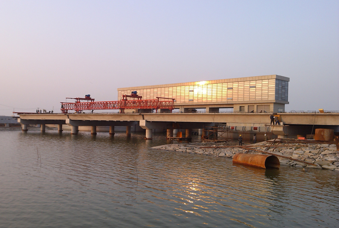 交通橋工程位于新城閘上游側(cè),跨徑