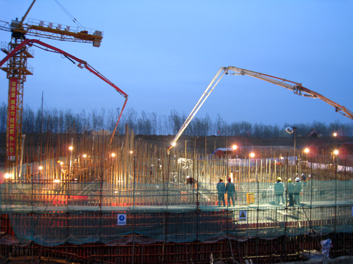 3月31日清晨6時(shí),伴著春日朝陽的緩緩升起,淮河入江水道石港泵站更新改造工程進(jìn)水流道層的最后一方混凝土入倉、振搗、收面,順利完成了全部澆筑任務(wù)。石港泵站項(xiàng)目部和前來支援的引江河二線船閘項(xiàng)目部的100多名施工人員,經(jīng)過36個(gè)小時(shí)的連續(xù)奮戰(zhàn)、輪班作業(yè),共同完成了石港泵站工程中方量最大、施工工藝最復(fù)雜、作業(yè)條件最艱苦的進(jìn)水流道層混凝土澆筑,順利實(shí)現(xiàn)了三月底完成進(jìn)水流道澆筑的節(jié)點(diǎn)目標(biāo)。