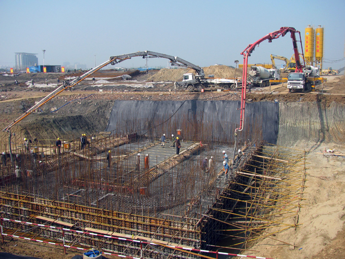 目前,新溝河江邊樞紐船閘主體工程正緊張有序地展開施工,閘室已封底,并分節(jié)開始底板立模扎筋。