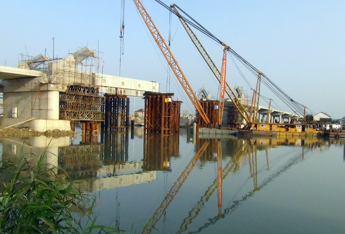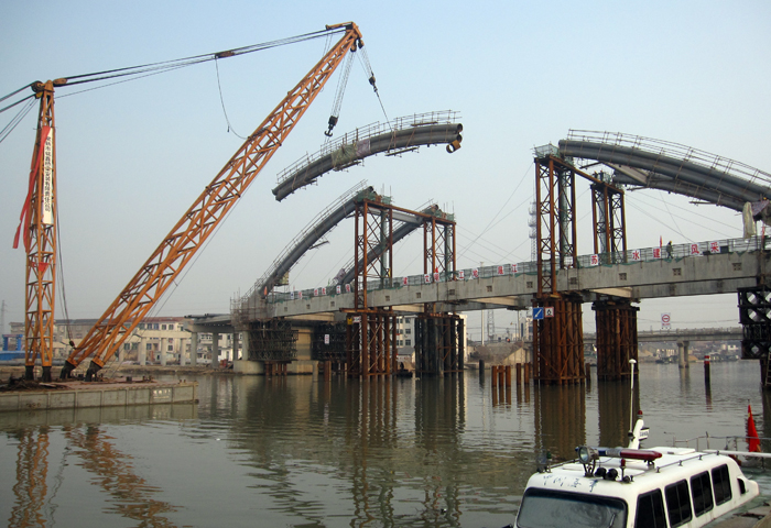 由我公司基礎工程分公司承建的南水北調(diào)泰州市鹵汀河拓浚跨河橋梁二標工程(港口公路橋),日前順利完成大橋主跨合龍。