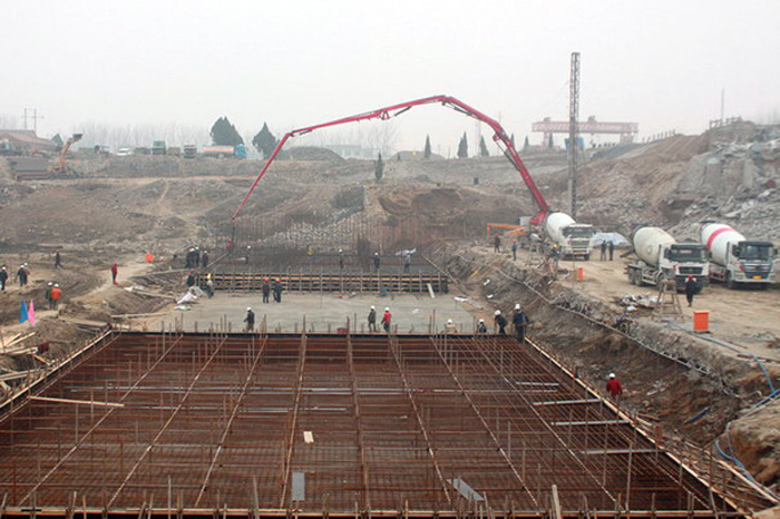 開倉澆筑前,參建四方聯(lián)合對底板混凝土結(jié)合面處理、倉內(nèi)預(yù)埋件安裝和鋼筋結(jié)構(gòu)安裝等進(jìn)行了檢查。在施工過程中,我公司項(xiàng)目部認(rèn)真落實(shí)施工安全措施,加強(qiáng)過程質(zhì)量控制,嚴(yán)格執(zhí)行技術(shù)方案,確保了施工質(zhì)量達(dá)到規(guī)范標(biāo)準(zhǔn)。