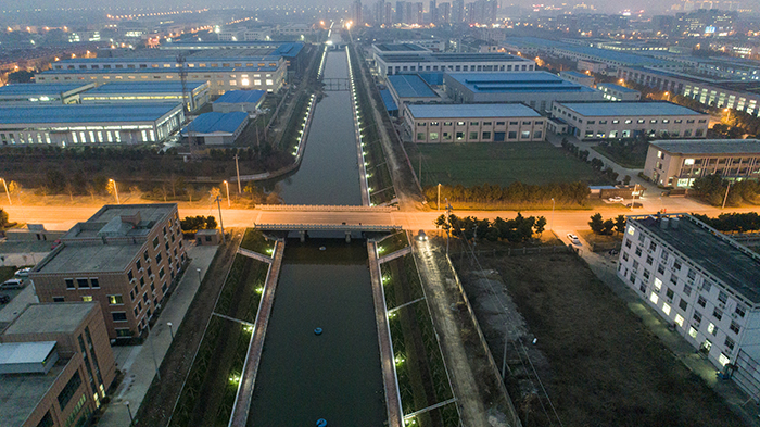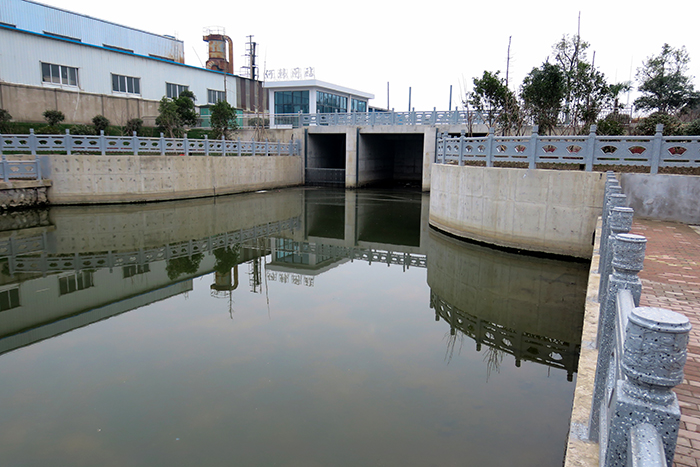 該工程由我公司實(shí)行設(shè)計(jì)、施工總承包,主要工作量包括河道清淤、新建生態(tài)擋墻、新建雙向引排閘站和水位控制閘等整治項(xiàng)目,15公里河道全程景觀綠化,設(shè)人行步道、仿花崗巖欄桿。我公司四分公司組織做好勘察設(shè)計(jì)、建設(shè)管理、施工組織等工作,于2018年4月12日正式開工,兩個(gè)月后完成水下工程,至12月15日完成全部工程建設(shè)任務(wù)。