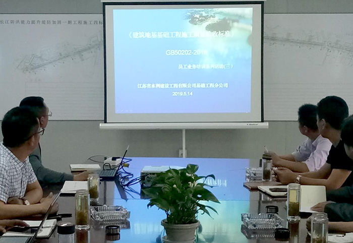 5月14日下午2時,基礎工程分公司在揚州市長江防洪能力提升加固一期工程(江都區(qū))施工Ⅳ~Ⅴ標項目部舉辦了《建筑地基基礎工程施工質(zhì)量驗收標準》(GB50202-2018)培訓,分公司領導、部門負責人及工程技術人員20多人參加了培訓。