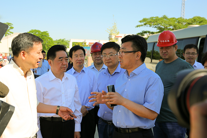 5月29日,省委常委、常務(wù)副省長(zhǎng)、省防指指揮、沭河和新沭河省級(jí)河長(zhǎng)樊金龍來(lái)到我公司承建的黃墩湖滯洪閘工程,檢查指導(dǎo)工程建設(shè)工作。宿遷市委書(shū)記、市人大常委會(huì)主任張愛(ài)軍,省水利廳黨組成員、水利廳兼應(yīng)急廳副廳長(zhǎng)張勁松,省水利廳黨組成員、省南水北調(diào)辦副主任鄭在洲等陪同,我公司董事長(zhǎng)、黨委書(shū)記時(shí)愛(ài)祥、四分公司經(jīng)理吳昊等同志參加相關(guān)活動(dòng)。