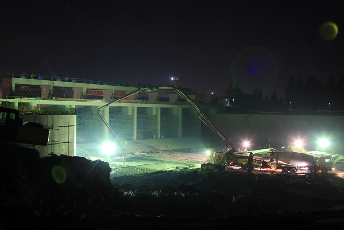 同時,科學(xué)的施工調(diào)度管理,使現(xiàn)場多點作業(yè)同步施工,交叉繁忙而井然有序;而敬業(yè)的管理隊伍、熟練的技術(shù)工人,保證了施工效率,實現(xiàn)了人、機(jī)、料、法、環(huán)各個要素的有機(jī)融合。工程施工場地狹小,進(jìn)出場道路不暢,曾一度束縛了節(jié)制閘施工的手腳。省廳、地方政府和工程建設(shè)處各級領(lǐng)導(dǎo)給予了極大的關(guān)心,李亞平廳長、陶長生副廳長等廳領(lǐng)導(dǎo)多次現(xiàn)場檢查指導(dǎo),協(xié)調(diào)解決工程難題。
