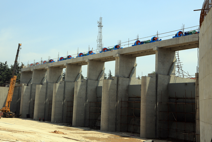 2013年春節(jié)前,為配合泗陽(yáng)市政府迎賓大道工程建設(shè),水利廳決定提前實(shí)施泗陽(yáng)閘拆除重建工程,省水建公司中標(biāo)承建該項(xiàng)目,水機(jī)公司負(fù)責(zé)該項(xiàng)目閘門、埋件和啟閉機(jī)的制作與安裝任務(wù)。由于必須在今年5月底前完成水下工程驗(yàn)收,滿足防汛要求,整個(gè)項(xiàng)目的建設(shè)工期只有4個(gè)多月,而留給閘門、埋件和啟閉機(jī)制作與安裝的時(shí)間只有3個(gè)多月,又是一個(gè)工期急、任務(wù)重、難度高的項(xiàng)目。調(diào)度的任務(wù)自然再次落到了顧建華同志的肩上。為了完成這一急難任務(wù),同時(shí)又要保證其它在建項(xiàng)目不受影響,他和車間工人一起,放棄春節(jié)休息,正月初二就開(kāi)始了忙碌。當(dāng)別人還在走親訪友歡宴聚餐時(shí),他們已在焊光閃閃和錘聲鏗鏘中勞作了;當(dāng)別人正在欣賞五彩焰火七彩燈景時(shí),他們正在加班加點(diǎn)挑燈夜戰(zhàn)。白天,他拿著圖紙奔波于各車間、現(xiàn)場(chǎng)之間;晚上,他拖著疲憊的身軀到家后,還要謀劃考慮第二天的安排;支鉸座因一期預(yù)埋,尺寸要逐一復(fù)測(cè)配合,他帶著尺子自己測(cè)量定位置;工地要貨了,他親自清點(diǎn)、歸分、做標(biāo)記;鉸座裝配缺人手,他二話不說(shuō)頂上去……為了能按期交貨,從春節(jié)到“五一”,他幾乎沒(méi)休息過(guò)一天。在他的帶領(lǐng)下,全體參建人員齊心協(xié)力,日趕夜搶,終于按期保質(zhì)地完成了任務(wù),為泗陽(yáng)閘“5·