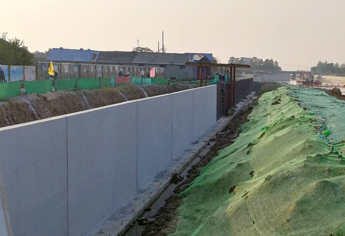 同時(shí),項(xiàng)目部組織擋墻和護(hù)坡施工班組以最快的速度推進(jìn)項(xiàng)目進(jìn)度,當(dāng)作業(yè)面一旦具備條件后,立即著手施工,出一段搶一段。