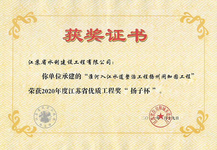 2020年度江蘇省優(yōu)質(zhì)工程獎“揚子杯”