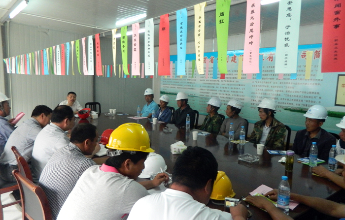 2013年6月14日上午,總經(jīng)理夏國春、工會主席姜啟生、紀委書記黃祥圣等公司安委會成員來到機械化分公司入江水道運河西堤六標項目部,開展安全宣傳周活動?;顒蝇F(xiàn)場,機械化分公司經(jīng)理吳寶華、項目經(jīng)理韓愛東分別介紹了分公司及項目部開展安全生產(chǎn)月活動情況。工會主席姜啟生要求項目部切實有效地開展安全月活動,加強勞動保護,落實好防暑降溫和高溫安全生產(chǎn)措施。夏國春總經(jīng)理傳達了習近平總書記6月6日對安全生產(chǎn)工作的重要指示,6月7日國務院召開的全國安全生產(chǎn)電視電話會議精神,傳達了近期省、市安全生產(chǎn)會議精神,通報了安全生產(chǎn)形勢。夏國春對加強公司安全生產(chǎn)工作、全面開展安全生產(chǎn)大檢查、抓好在手工程建設、廣泛深入開展安全生產(chǎn)月活動提出了具體要求。他要求公司上下要時刻崩緊安全生產(chǎn)這根弦,做到安全檢查全覆蓋、隱患治理不留情;公司各分公司、各個生產(chǎn)項目部要在思想上高度重視,措施嚴格落實,加強夏季高溫作業(yè)安全、防汛防臺生產(chǎn)安全,全面細致、深入有效地抓好安全生產(chǎn)工作。會后,公司安委會成員沿著運河大堤,步行5公里,仔細檢查了施工現(xiàn)場。