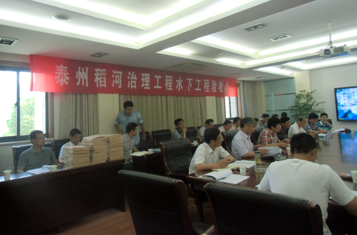 驗(yàn)收組實(shí)地查看了上下游護(hù)坡、閘室墻、閘室底板、底軸驅(qū)動(dòng)式翻板閘門等稻河閘工程水下結(jié)構(gòu)部分,認(rèn)真聽取了工程建設(shè)、設(shè)計(jì)、施工、監(jiān)理單位的工作報(bào)告,聽取了工程質(zhì)量檢測(cè)意見、工程質(zhì)量監(jiān)督意見,仔細(xì)查閱了工程檔案資料,經(jīng)過與會(huì)專家充分討論后,認(rèn)為泰州稻河治理工程已按設(shè)計(jì)要求完成水下工程,工程施工符合設(shè)計(jì)要求,滿足規(guī)范規(guī)程,工程檔案資料規(guī)范齊全,同意通過水下工程階段驗(yàn)收。