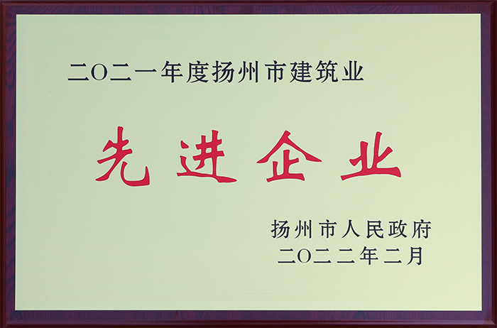 日前,揚州市政府對2021年度全市建筑業(yè)先進單位和先進個人進行了表彰,公司榮獲2021年度揚州市建筑業(yè)先進企業(yè)榮譽稱號。