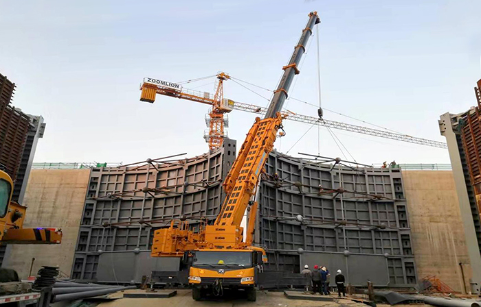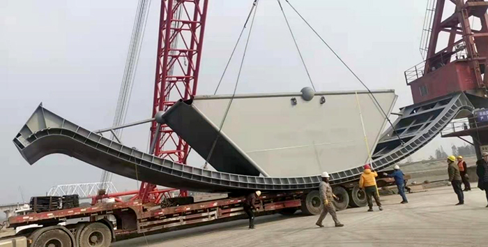 3月3日,在兩臺(tái)大型起重吊機(jī)的配合下,安徽裕溪一線船閘擴(kuò)容改造工程下閘首閘門第一片分段成功起吊就位,標(biāo)志著世界最大孔口寬(34m)的船閘三角閘門正式進(jìn)入安裝階段。