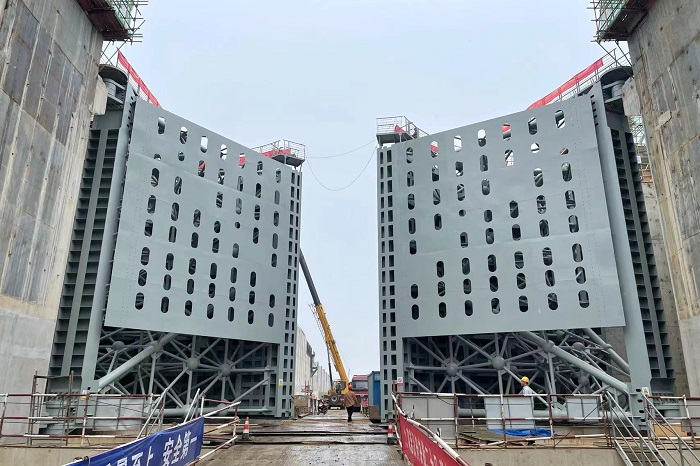 廬江船閘是在菜子湖與巢湖分水嶺上建設(shè)的控制性樞紐工程,可滿(mǎn)足引江濟(jì)巢段菜巢線工程引水、通航、防洪等需要,是“引江濟(jì)淮”關(guān)鍵性節(jié)點(diǎn)工程。船閘閘室長(zhǎng)240米,寬23米,高16.95米,按Ⅲ級(jí)船閘標(biāo)準(zhǔn)建設(shè),設(shè)計(jì)船舶噸級(jí)為1000t級(jí),兼顧2000t船舶。船閘金屬結(jié)構(gòu)主要由三角閘門(mén)、閘首檢修門(mén)、輸水閥門(mén)、浮式系船柱、門(mén)槽埋件及啟閉設(shè)備等組成。