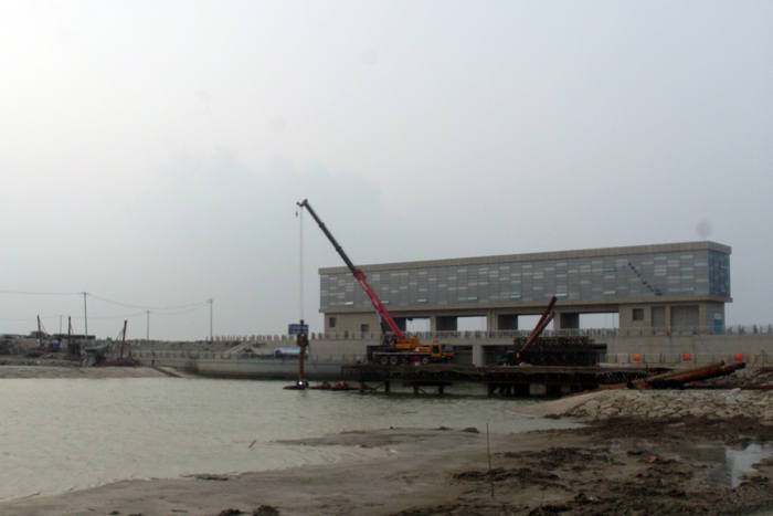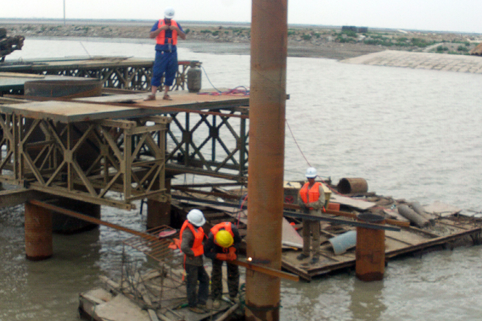 一邊是如火如荼的建設(shè)工地,另一邊是遼闊平靜的海面。驕陽(yáng)下江蘇水建人正默默地工作,向著目標(biāo)堅(jiān)定前進(jìn)……