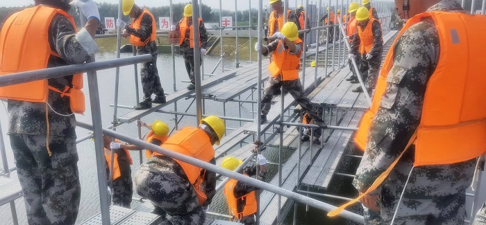 6月20日,公司參加全省軍地聯(lián)合防汛應(yīng)急搶險救援培訓(xùn)演練隊員們頂著炎炎烈日投入訓(xùn)練,他們揮汗如雨,在省防汛搶險訓(xùn)練場(南京市六合區(qū)紅山窯水利樞紐)嚴格按照演練要求進行鋼木組合土石壩鋼木框架的搭、拆培訓(xùn)。