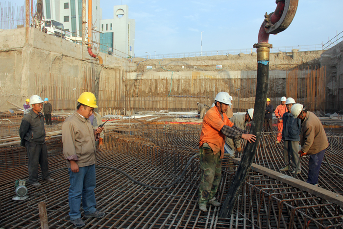 本次混凝土澆筑是工程下閘首重要部位的施工。建設(shè)局、監(jiān)理處、項(xiàng)目部和設(shè)計(jì)部門(mén)認(rèn)真總結(jié)了上閘首澆筑經(jīng)驗(yàn),反復(fù)討論本次施工計(jì)劃,對(duì)澆筑過(guò)程可能出現(xiàn)的各種問(wèn)題作了充分的分析研究。工程技術(shù)人員克服地質(zhì)條件復(fù)雜、降水困難等不利因素,精心組織施工。1022上午8時(shí)30分開(kāi)倉(cāng)澆筑。澆筑分三次進(jìn)行,約4000方混凝土。項(xiàng)目部主要管理人員輪流值班,監(jiān)理全程跟班旁站,建設(shè)局工程管理人員全程配合監(jiān)督。經(jīng)過(guò)61個(gè)小時(shí)連續(xù)奮戰(zhàn),順利完成了底板澆筑。