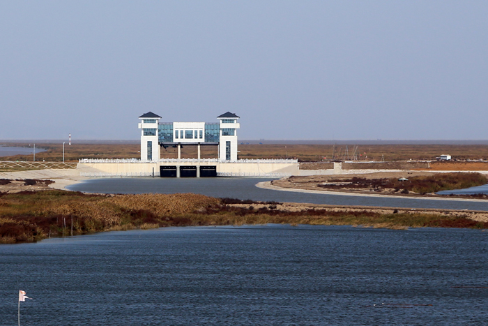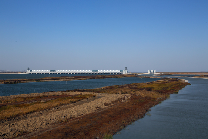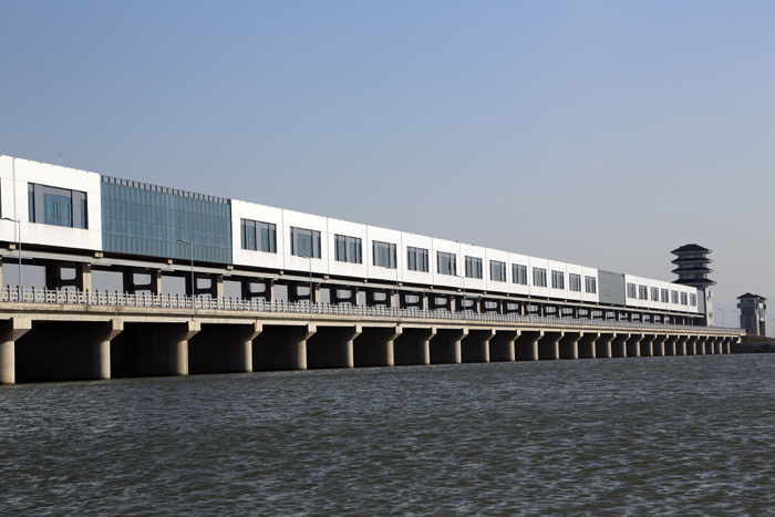 就在上星期,隨著大堤瀝青道路的施工完成,這個2008年11月開工,歷時五年建設(shè)的三洋港樞紐工程完成了全部施工任務(wù),長近1公里的節(jié)制閘宛如一條巨龍呈現(xiàn)在人們眼前,其壯觀、雄偉、精致、秀美得讓人贊嘆不已。而這背后,是堅強的江蘇水建人在這蘆葦叢生、荒蕪人煙的苦寒地帶,面對地質(zhì)條件特別差、工程量特別大、工作面特別廣、不確定因素特別多等困難,冒著寒冷的嚴冬破冰而作,頂著盛夏的驕陽揮汗而行。是他們牢記責(zé)任和使命,規(guī)范管理,創(chuàng)新工藝,攻堅克難,運籌帷幄,決戰(zhàn)黃海之濱,又一次為江蘇水利奉獻了一部精品力作。