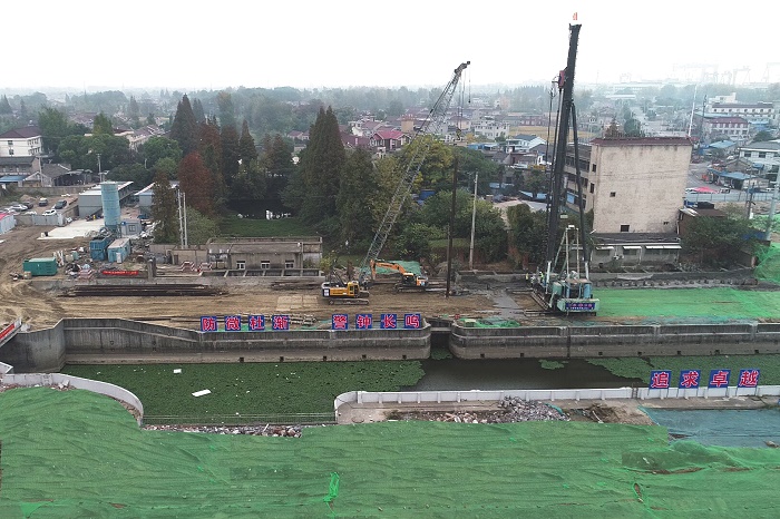 通江閘樞紐位于江都區(qū)嘶馬鎮(zhèn)紅旗河南段,為紅旗河與長(zhǎng)江之間的控制口門,是一座集擋洪、排澇、引水、通航(兼顧)等功能于一體的綜合利用型套閘。本次改造原址拆建通江閘、西泵站、345國(guó)道嘶馬閘橋等。工程于2022年9月30日開(kāi)工,目前已完成上下游圍堰的填筑、通江閘上部結(jié)構(gòu)及嘶馬閘橋的拆除以及部分基坑支護(hù)工程,計(jì)劃2023年5月31日閘站部分具備通水驗(yàn)收條件,2023年12月31日具備完工驗(yàn)收條件。