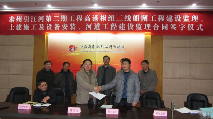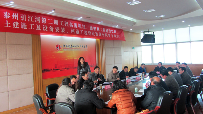 2012年12月11日下午,泰州引江河二線船閘施工合同談判、簽約暨開工動(dòng)員會(huì)在省泰州引江河管理處順利召開,泰州引江河二期工程建設(shè)局局長馬志華、副局長張政田、陳衛(wèi)沖等建設(shè)單位領(lǐng)導(dǎo)與設(shè)計(jì)、監(jiān)理、施工等單位領(lǐng)導(dǎo)出席會(huì)議。公司總經(jīng)理夏國春、副總經(jīng)理顧明如參加合同談判與簽約活動(dòng)。