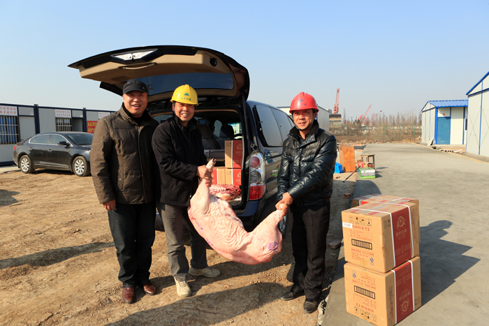 1月中旬,公司總經(jīng)理夏國春和黨委副書記、工會主席姜啟生率隊慰問了多個在建工程項目部。慰問組準(zhǔn)備了肉、魚等慰問品,來到一線工地,將公司的關(guān)心、關(guān)愛和溫暖傳遞給最前線的職工手中,鼓勵大家鼓足干勁沖刺春節(jié)前夕的施工大會戰(zhàn)。各項目部將公司的人文關(guān)懷轉(zhuǎn)化為加緊施工的動力,齊心協(xié)力完成了節(jié)前施工任務(wù)。