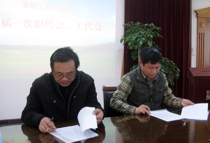 會議審議通過了2011年至2013年分公司工作報告、工會工作報告和財務工作報告,布置了2014年度工作計劃和目標,表彰了2013度在項目管理、生產(工作)、質量、安全管理方面的先進集體和個人。會議選舉產生了分公司新一屆工會委員會和參加公司“雙代會”的職工代表。會上,分公司領導與所屬部門、項目部、工程處簽訂了2014年度經(jīng)濟承包責任書以及綜合治理、環(huán)境、職業(yè)健康安全工作責任書。