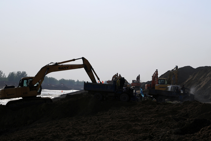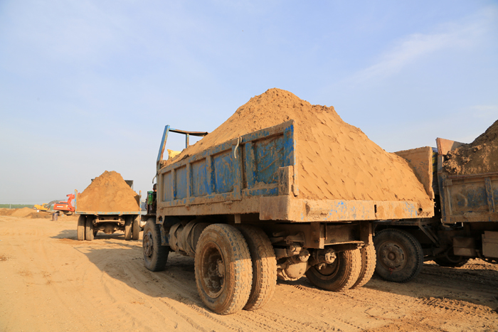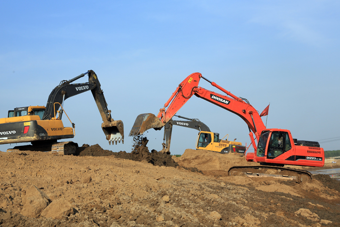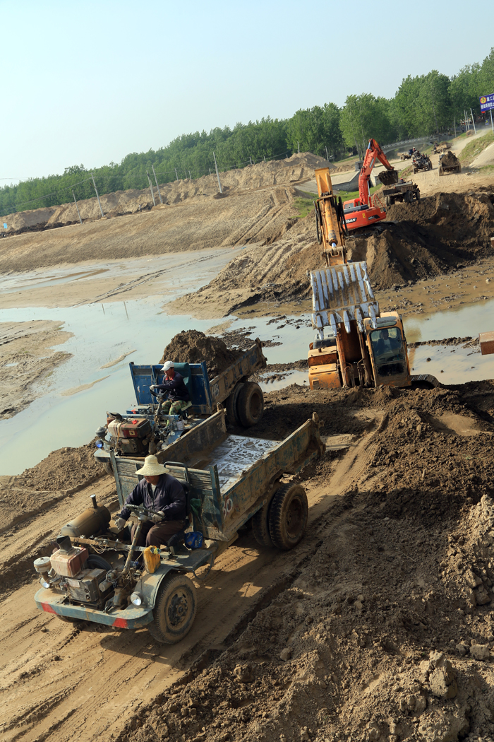 145萬(wàn)方土,在過(guò)去肩挑手扛的年代,需要一年時(shí)間;在現(xiàn)在的機(jī)械化作業(yè)情況下,至少需要100天。而業(yè)主給項(xiàng)目部的時(shí)間僅為60天,幾乎是不可能完成的任務(wù)。公司的鐵軍精神再次被發(fā)揮到極致。項(xiàng)目部將工程分為5個(gè)施工區(qū),組織了60臺(tái)挖掘機(jī)、15臺(tái)推土機(jī)、11臺(tái)裝載機(jī)、140臺(tái)運(yùn)輸車晝夜不停地展開施工。項(xiàng)目部采取加班加點(diǎn)、班組競(jìng)賽、獎(jiǎng)快罰慢、快者多干等激勵(lì)手段,加快工程進(jìn)展。工程高峰期日開挖土方達(dá)6萬(wàn)方,創(chuàng)下了我公司土方施工的新紀(jì)錄。