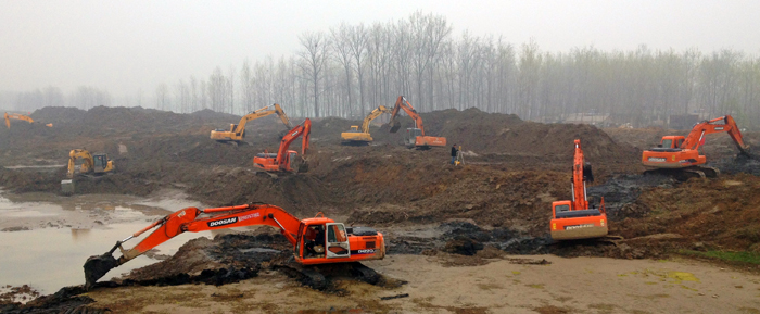 本站訊,經(jīng)過(guò)40天高強(qiáng)度的搶工,由我公司房建分公司承建的徐州市睢寧段黃河故道干河(峰山閘至劉集橋)治理工程B標(biāo)段,目前已完成了河道土方開挖。施工高峰期日開挖土方6萬(wàn)方,創(chuàng)下了我公司施工新記錄。