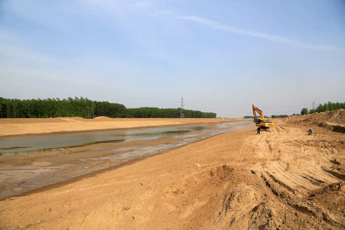 目前工程正進(jìn)行河道上部土方修整和橋梁等建筑物的施工,預(yù)計(jì)可于10月底前完成全部施工任務(wù)。