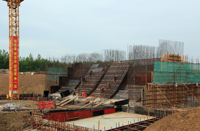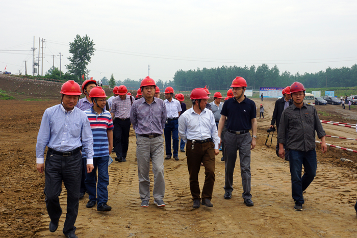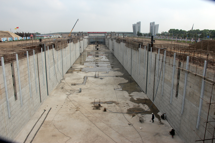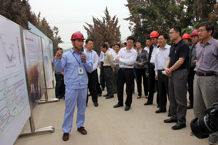 其后,代表們來到我公司承建的淮河入江水道整治工程石港泵站。我公司副總經理、該工程項目經理楊斌介紹了工程進展情況。我公司項目部于2013年11月進場施工,