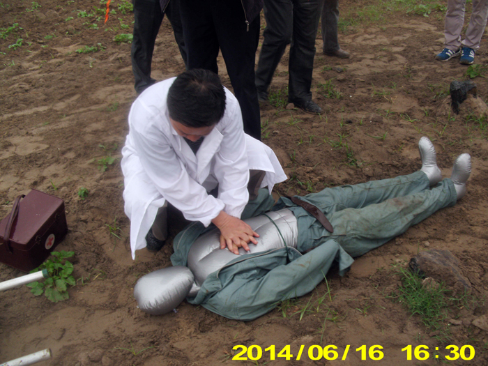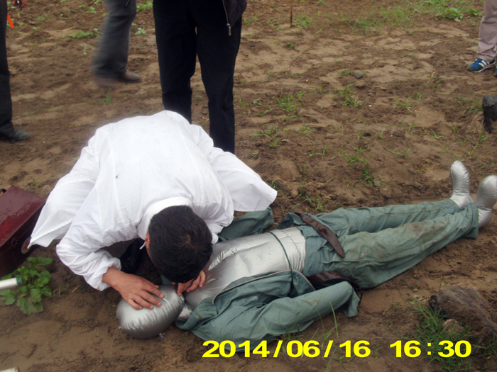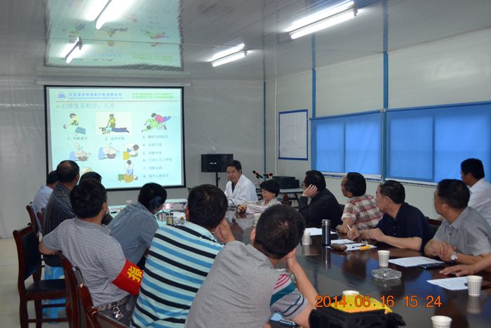 演練開始前,在項(xiàng)目部會(huì)議室進(jìn)行了應(yīng)急救援知識(shí)的培訓(xùn)。分公司安全科長(zhǎng)朱躍南向參演人員講述了溺水救護(hù)的有關(guān)知識(shí),然后由具備職業(yè)資格的主治醫(yī)師劉東從專業(yè)角度講解了如何進(jìn)行搶救和救治落水者。