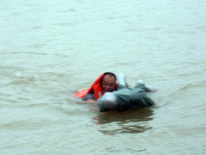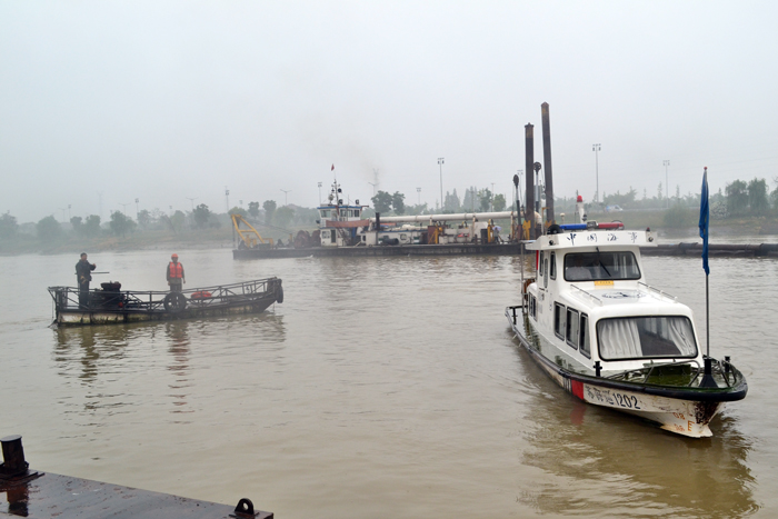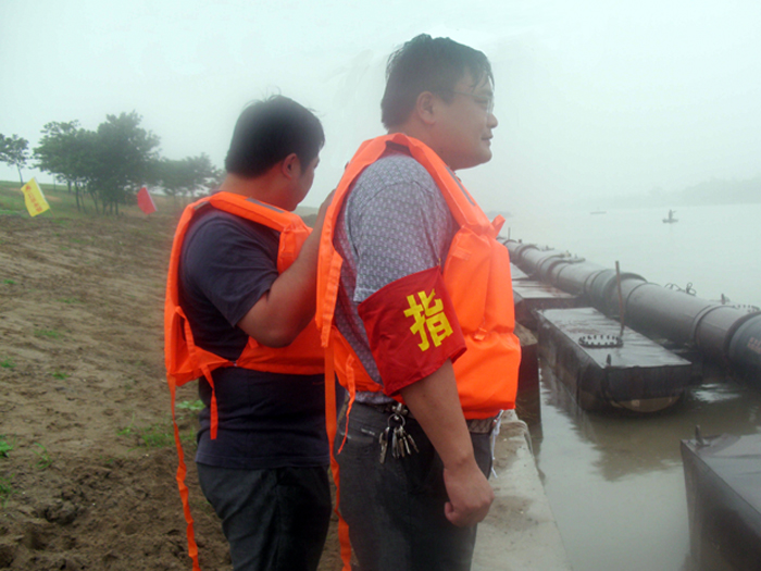 下午4時(shí)許,總指揮葛年平宣布實(shí)戰(zhàn)演練開始,各參演人員立即投入到了人員溺水應(yīng)急救援活動(dòng)中?,F(xiàn)場(chǎng)“蘇水大禹號(hào)”疏浚船正在引江河內(nèi)施工,這時(shí)船員馬樹軍發(fā)現(xiàn)有人落水并大聲呼救:“有人落水”,“蘇水大禹號(hào)”主任陳金國(guó)、副主任濮玉強(qiáng)聞聲立即趕往落水者附近,同時(shí)陳金國(guó)電話向項(xiàng)目經(jīng)理報(bào)告。總指揮葛年平接報(bào)后,立即啟動(dòng)應(yīng)急救援機(jī)制,帶領(lǐng)項(xiàng)目部各救援組冒雨趕往現(xiàn)場(chǎng)。安全科長(zhǎng)徐聚朋立即向海事部門求援,請(qǐng)求海事艇進(jìn)行封航。同時(shí),副指揮閆武軍撥打“120”請(qǐng)求救護(hù)。這時(shí)應(yīng)急救援小組人員已抵達(dá)現(xiàn)場(chǎng)后開展救援工作。救生艇迅速靠近落水者,水性較好的吳明福跳入水中救援落水者,在救生艇的保護(hù)下將落水者救出水面帶至岸邊,其后用擔(dān)架抬至空曠地點(diǎn),使溺水人員仰臥于平坦位置。劉東醫(yī)師采用人工呼吸和心肺復(fù)蘇方法對(duì)落水者了急救。在經(jīng)過緊急搶救后,溺水人員得以蘇醒,救援人員對(duì)溺水人員作了妥善安置。