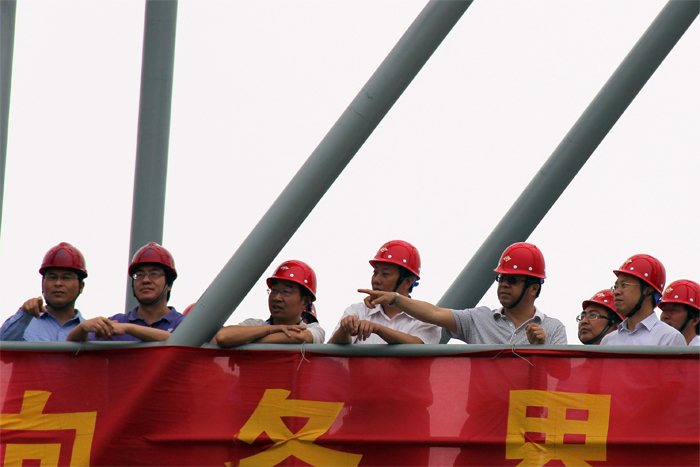 葉健一行實(shí)地查看了泰州引江河第二期工程河道工程和二線船閘工程施工現(xiàn)場,詳細(xì)詢問了工程建設(shè)進(jìn)展情況及施工過程中遇到的困難。在聽取省泰州引江河第二期工程建設(shè)局負(fù)責(zé)同志關(guān)于工程建設(shè)情況的匯報(bào)后,葉健指出,泰州引江河第二期工程戰(zhàn)線長、要求高、施工難度大、施工干擾多,工程自2012年12月開工建設(shè)以來,參建各方克服困難、嚴(yán)格要求、堅(jiān)持“三創(chuàng)”,二線船閘已通過水下階段驗(yàn)收,河道工程總體進(jìn)展良好,并取得了一些榮譽(yù),對此表示充分肯定。對下一階段工作,葉健提出明確要求:一要進(jìn)一步理清下一階段工作思路,針對工程建設(shè)進(jìn)展,研究不同時(shí)期不同難點(diǎn)、關(guān)鍵點(diǎn),有重點(diǎn)地開展工作;二要進(jìn)一步加強(qiáng)質(zhì)量控制和管理,特別要加強(qiáng)河道工程排泥場圍堰質(zhì)量的控制和管理,延續(xù)并探索好的施工方法和經(jīng)驗(yàn);三要進(jìn)一步加強(qiáng)科技創(chuàng)新課題研究,在工程建設(shè)過程中要加強(qiáng)創(chuàng)新,善于總結(jié);四要進(jìn)一步加強(qiáng)工期管理,協(xié)調(diào)相關(guān)矛盾,針對工程建設(shè)實(shí)際,及時(shí)調(diào)整工期安排,為順利實(shí)現(xiàn)工程建設(shè)目標(biāo)打好基礎(chǔ);五要加強(qiáng)安全管理,針對后續(xù)施工特點(diǎn),加大巡查、整改力度,做到警鐘長鳴;六要加強(qiáng)工程投資控制,加強(qiáng)過程控制,重大設(shè)計(jì)變更需及時(shí)報(bào)批;七要加強(qiáng)組織協(xié)調(diào),注重調(diào)動(dòng)各方積極性;八要注重工程建設(shè)過程中的宣傳工作。葉健強(qiáng)調(diào),參建各方要珍惜機(jī)遇、密切協(xié)作、加強(qiáng)管理,確保工程建設(shè)各項(xiàng)目標(biāo)任務(wù)順利完成。