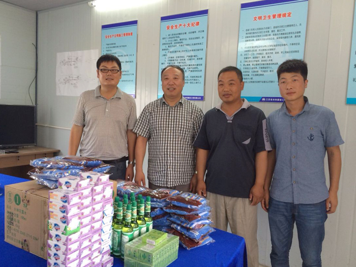 個在建工程項目,看望炎熱天氣堅守施工一線的公司員工,為他們送上了風油精、花露水等防暑降溫用品。