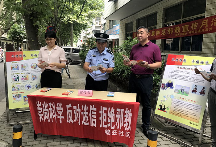 7月14日上午,天氣悶熱,蟬鳴刺耳,揚(yáng)州市梅嶺街道辦錦旺社區(qū)“深入開展防范邪教宣傳月活動(dòng)”來到公司大院,給公司廣大員工送來了法制知識(shí)和文明“涼風(fēng)”。