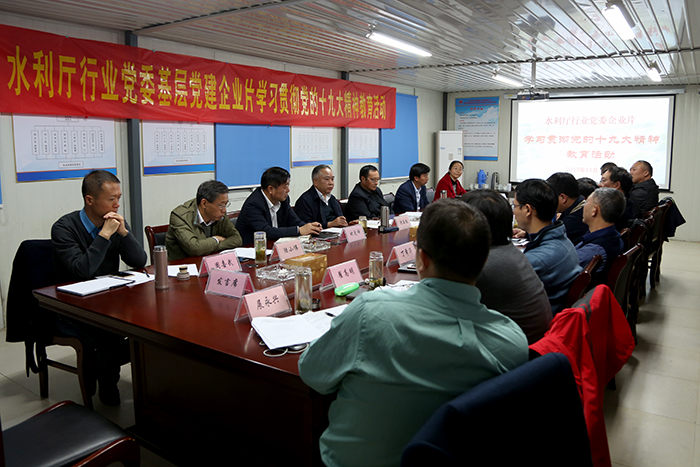 11月17日、18日,我公司黨委在常滸河項目部承辦組織了省水利廳行業(yè)黨委企業(yè)片學(xué)習(xí)貫徹黨的十九大精神教育活動。黨的十九大代表、揚州文昌社區(qū)黨委書記鄭翔作專題輔導(dǎo),省水利廳機(jī)關(guān)黨委副書記沈亞健對學(xué)習(xí)貫徹十九大精神作出部署。省水利設(shè)計院公司、省水利工程勘測設(shè)計院公司、省太湖設(shè)計院公司、省宏源招標(biāo)公司、省水利咨詢公司以及我公司的黨委(總支、支部)書記、副書記、黨辦主任及基層黨支部書記代表29人參加了活動?;顒佑晒军h委書記、董事長時愛祥主持。