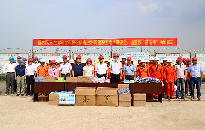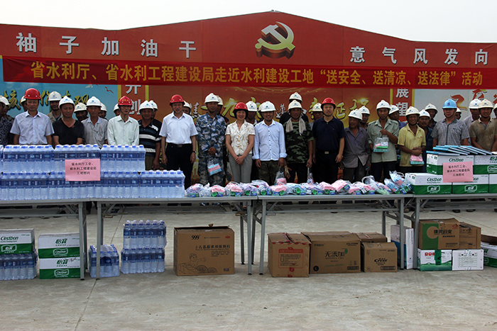 7月23日至24日,省水利廳副巡視員湯超率隊(duì)赴我公司界牌樞紐和瓜洲泵站工地,開(kāi)展夏季“送安全、送清涼、送法律”慰問(wèn)活動(dòng),并對(duì)獲得2017年度江蘇省十大重點(diǎn)工程勞動(dòng)競(jìng)賽榮譽(yù)稱號(hào)的單位和個(gè)人進(jìn)行了表彰。省水利廳機(jī)關(guān)黨委、工會(huì),省水利工程建設(shè)局及省太湖治理工程建管局、揚(yáng)州市水利局有關(guān)負(fù)責(zé)同志參加慰問(wèn)。我公司副總經(jīng)理翟高明、總經(jīng)理助理湯應(yīng)來(lái)參加相關(guān)活動(dòng)。