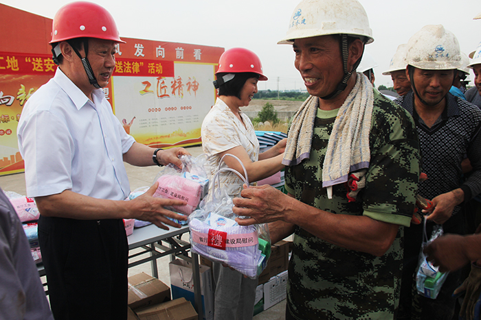 湯超一行先后來(lái)到由我公司承建的新孟河界牌水利樞紐、揚(yáng)州市瓜州泵站工程現(xiàn)場(chǎng),看望和慰問(wèn)堅(jiān)守在工程一線的建設(shè)者,將防暑降溫用品等送到一線職工手中,同時(shí)贈(zèng)送了《安全生產(chǎn)法》《水利安全生產(chǎn)標(biāo)準(zhǔn)化指導(dǎo)手冊(cè)》《建筑工人勞動(dòng)防護(hù)手冊(cè)》等安全生產(chǎn)法律法規(guī)和書籍。座談過(guò)程中,湯超聽(tīng)取了工程建設(shè)管理情況的匯報(bào),詳細(xì)了解了一線職工的作息時(shí)間、工作強(qiáng)度、飲食衛(wèi)生、住宿條件及現(xiàn)場(chǎng)防暑降溫措施落實(shí)等情況,要求項(xiàng)目部合理安排職工作息時(shí)間,開(kāi)展輪換作業(yè),適當(dāng)增加休息時(shí)間、減輕勞動(dòng)強(qiáng)度,做好職工飲水、飲食衛(wèi)生和防暑降溫等工作。