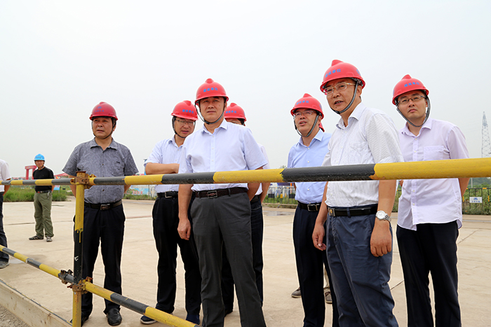 袁文傳一行實地查看了界牌樞紐工程施工現(xiàn)場,聽取了省治太局副局長何勇對工程建設(shè)管理情況的匯報。