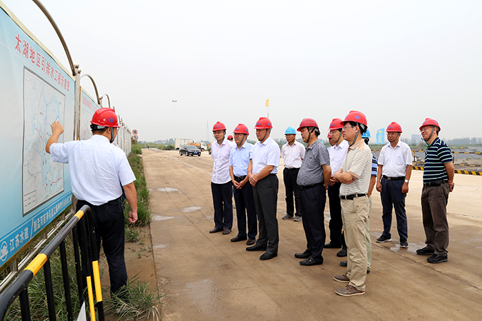9月7日上午,水利部水利工程建設(shè)司副司長袁文傳帶隊赴我公司界牌樞紐工地調(diào)研工程建設(shè)情況。太湖流域管理局副局長黃衛(wèi)良、省水利廳副廳長朱海生等陪同調(diào)研。我公司黨委書記、董事長時愛祥、副總經(jīng)理顧永明、總經(jīng)理助理、界牌樞紐項目經(jīng)理湯應(yīng)來參加活動。