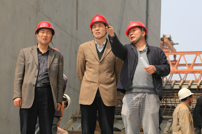 這一切來自于他們科學(xué)規(guī)范的施工組織,嚴格苛刻的現(xiàn)場管理。雖然是“三天完成基坑土方開挖、兩天一塊底板、十五天完成閘墩交通橋、七天完成排架工作橋”,但他們對質(zhì)量的要求、安全的管理沒有一絲一毫的馬虎和松懈。攻克基坑降水難關(guān),開展弧軌調(diào)節(jié)支柱、支鉸一次預(yù)埋,翼墻先高后低施工,高陡坡滾水堰混凝土澆筑工藝創(chuàng)新等措施,保證了工程進度和質(zhì)量。兩個月里省質(zhì)監(jiān)站已檢查了5次,李亞平廳長、陶長生副廳長等廳領(lǐng)導(dǎo)多次現(xiàn)場檢查指導(dǎo),對工程施工既是大力地支持,也是有力地鞭策,更是對工程合力地推進。