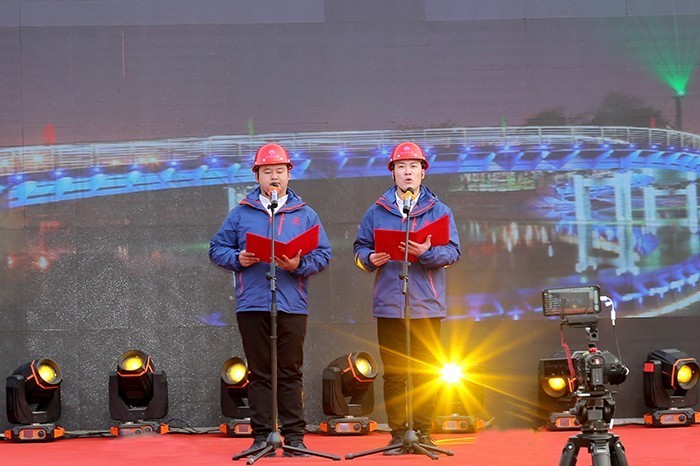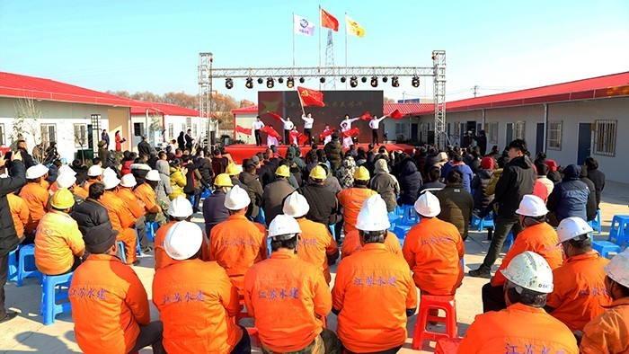 12月29日,由公司黨委主辦,公司工會、團委、新孟河界牌樞紐項目部承辦的職工迎新年聯(lián)歡會在江蘇省重點水利工程---新孟河界牌樞紐的施工現(xiàn)場隆重舉行,邀請了新孟河工程建管局、新孟河界牌樞紐工程建設(shè)處、公司所屬各單位、各部門的領(lǐng)導(dǎo)和職工以及項目部施工一線工人約200多人到場觀看演出,共同慶祝偉大祖國改革開放40周年。