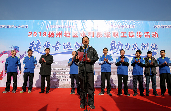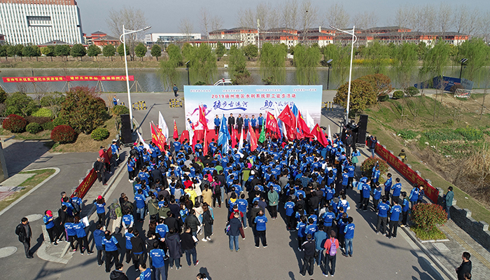 上午8時(shí)30分,揚(yáng)州市水利局人事處處長(zhǎng)季暑月主持了開幕式,我公司董事長(zhǎng)時(shí)愛祥在開幕式上致辭,揚(yáng)州市水利局局長(zhǎng)康盛君致辭并宣布活動(dòng)開始。參加活動(dòng)的有從事水行政管理的,有從事水利工程管理的,有從事水文水資源管理的,有從事水利高等教育的,而更多的是來自水利工程勘測(cè)、設(shè)計(jì)、施工一線的職工和志愿者們,可以說是揚(yáng)州水利歷史上第一次大家庭聚會(huì),是揚(yáng)州市域水利工作者攜手同行,向建國(guó)70周年獻(xiàn)禮的一個(gè)盛會(huì),更是全面落實(shí)河湖長(zhǎng)制、紀(jì)念2019年世界水日、中國(guó)水周、保護(hù)母親河、推進(jìn)重點(diǎn)水利工程建設(shè)的一次“新長(zhǎng)征”。