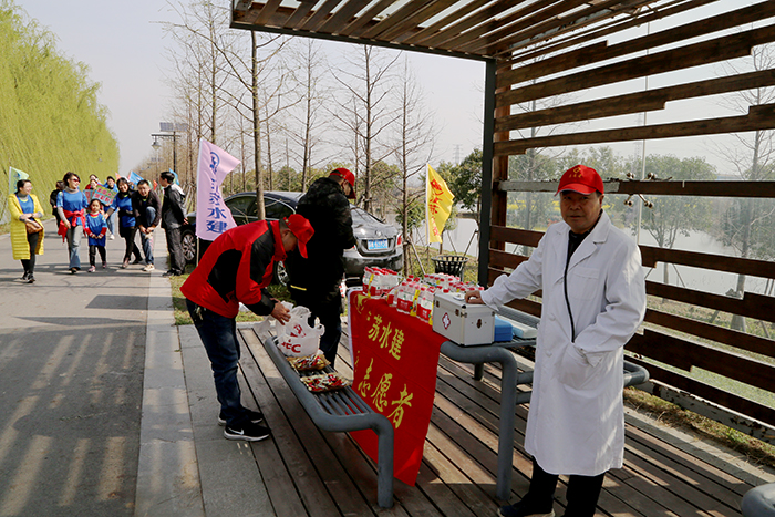 早春的陽光和煦明媚,瓜洲泵站工地上處處生機(jī)盎然。公司駕駛員帶領(lǐng)、指引接送徒步人員的車輛統(tǒng)一、有序停放于項(xiàng)目部籃球場(chǎng);公司志愿者們分工明確,有的早早到達(dá)中途補(bǔ)給站,精心準(zhǔn)備了水、巧克力等物資,以供徒步人員能量補(bǔ)給;有的提前至終點(diǎn)準(zhǔn)備好水、食品、紀(jì)念證書等迎接徒步大軍;瓜洲項(xiàng)目醫(yī)護(hù)人員提前準(zhǔn)備了葡萄糖和急救用品,保障徒步活動(dòng)順利進(jìn)行。